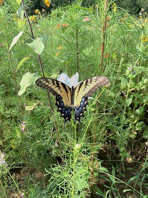 A butterfly stopping to say hello in a flower field at the North Carolina Museum of Art.