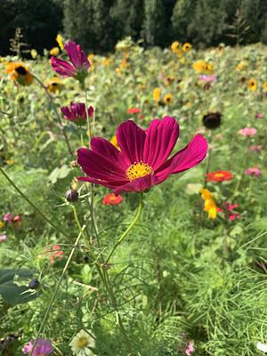 A field full of budding flowers on a spring day.